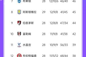 本賽季英超爭四進(jìn)入白熱化,切爾西暫以49分排在第四,曼城與紐卡同積47分分列5、6名。第10名的富勒姆也只落后切爾西7分。