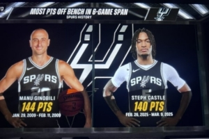 轉(zhuǎn)播方曬出一組數(shù)據(jù),馬刺隊新秀卡斯?fàn)栐谧罱?場比賽中替補出戰(zhàn),合計砍下140分!