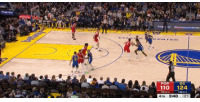 比賽第四節(jié),巴特勒拼到前場籃板,拿到個(gè)人勇士生涯的第一個(gè)三雙!