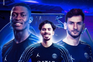 巴黎官方社媒發(fā)布為此役制作的海報(bào),維蒂尼亞、努諾-門德斯以及克瓦拉茨赫利亞在列。