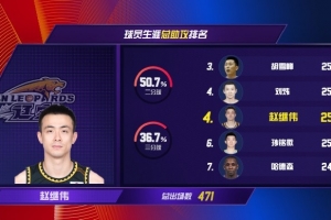 根據(jù)數(shù)據(jù)統(tǒng)計,加上今天的10個助攻,趙繼偉的CBA生涯助攻數(shù)來到了2591次,他追平劉煒,并列CBA歷史助攻榜第4位。