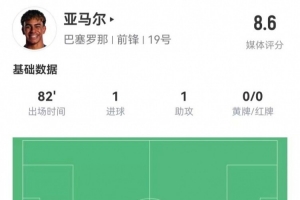 下一篇: 巴薩vs本菲卡數(shù)據(jù):射門20-8、射正6-2、得分機(jī)會4-1、角球1-6