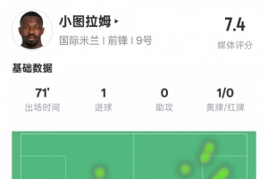 小圖拉姆本場比賽數(shù)據(jù)如下: