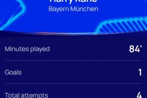 本場比賽凱恩發(fā)揮出色,打進一球還有1次助攻,4次射門,跑動距離也達到9km,賽后凱恩當選歐冠官方評選出的本場最佳球員。
