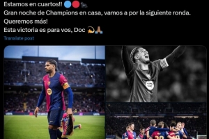 巴薩隊長阿勞霍也在賽后社媒曬照,將勝利獻給球隊已故隊醫(yī),配文寫道:“我們晉級8強,很棒的歐冠主場之夜,讓我們晉級下一輪!我們還想要更多。勝利獻給你,醫(yī)生?!?/p>