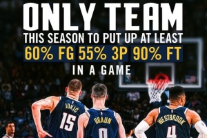 據(jù)統(tǒng)計(jì),掘金是本賽季首支球隊(duì)在一場(chǎng)比賽中打出60-55-90%的命中率。而且掘金打的是聯(lián)盟第一防守的雷霆。