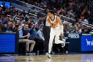 “這就像是一次橄欖球戰(zhàn)術(shù)配合,” 哈利伯頓說,并指出他的隊(duì)友們跑了交叉路線。“看到戰(zhàn)術(shù)成功執(zhí)行感覺很棒,兩年前在訓(xùn)練營我們第一次演練這個戰(zhàn)術(shù)時,我也是以同樣的方式投中了球。從那以后我就沒再接到過這個球,我通常不喜歡執(zhí)行這個戰(zhàn)術(shù)?!?/p>