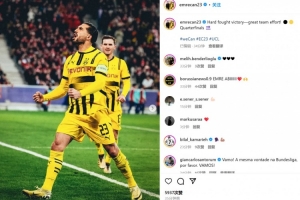 埃姆雷-詹也在賽后通過社媒曬出了自己的怒吼慶祝照,并配文:“全隊努力鏖戰(zhàn)贏下勝利????歐冠八強戰(zhàn)??”