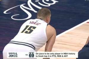 本場比賽前,約基奇場均28.9分13籃板10.5助攻