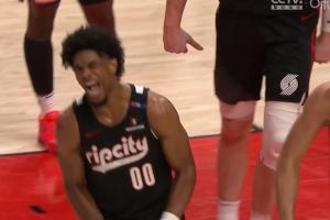 此球打進(jìn)后開(kāi)拓者取得領(lǐng)先 隨后被布里奇斯三分壓哨絕殺