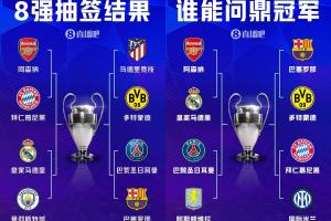 23/24賽季歐冠8強:阿森納vs拜仁,皇馬vs曼城,馬競vs多特,巴黎vs巴薩