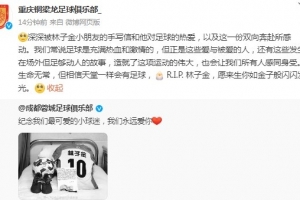 得知林子金去世的消息后,重慶銅梁龍俱樂部官博轉(zhuǎn)發(fā)了成都蓉城俱樂部的訃告并配文悼念寫道: