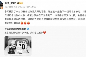 昨天,成都蓉城官方發(fā)布訃告,小球迷林子金不幸去世。張悅在社媒悼念寫道: