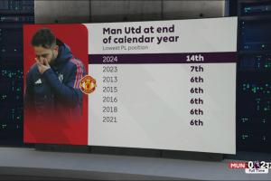 英媒統(tǒng)計了曼聯(lián)自然年收官最差名次排名: