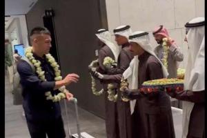 當(dāng)?shù)貢r(shí)間本周一,國米全隊(duì)乘坐卡塔爾航空的航班,抵達(dá)了利雅得。一些當(dāng)?shù)卮碓跈C(jī)場迎接,并為球員們送上了由鮮花和香精制作的花環(huán)。