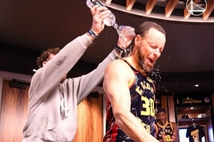 庫里被澆水后表示:“科爾勝場數(shù)來到了隊(duì)史第一!“