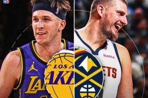 NBA官方曬出海報為本場比賽預(yù)熱,封面人物是約基奇和里夫斯,官方配文寫道:“約基奇和(西部)排名第三的掘金將對陣奧斯汀-里夫斯和排名第四的湖人!”