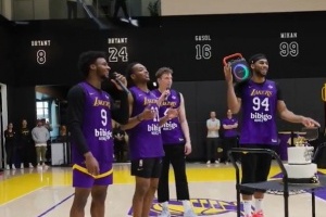 唱歌的4個湖人菜鳥分別是布朗尼、奧利瓦里、克內(nèi)克特、特拉奧雷