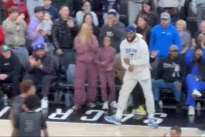 塞拉峽谷高中憑借這個籃下2+1,最后17秒領(lǐng)先5分,幾乎鎖定勝局,詹姆斯場邊怒吼激情慶祝!