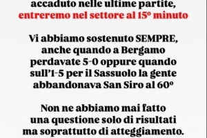 我們一直都支持你們,即使你們在貝爾加莫0-5不敵亞特蘭大,或者1-5不敵薩索洛時(shí),人們在第60分鐘離開圣西羅。