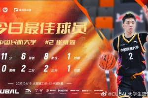 在中國民航大學(xué)82-81險勝大連理工的比賽中,中國民航大學(xué)2號崔雍鑫以11分8助攻的數(shù)據(jù)詮釋了作為分位的他同樣能勝任控衛(wèi)的工作。盡管三分線外9投僅2中,其手術(shù)刀般的傳球卻刀刀見血——8次助攻直接創(chuàng)造21分,包括終場逆轉(zhuǎn)比分的制勝三分。當(dāng)技術(shù)統(tǒng)計表上赫然標(biāo)注“0失誤”,這位身披2號戰(zhàn)袍的節(jié)奏大師,用絕對控場力撕碎對手防線:4次后場籃板快速發(fā)動反擊,更以1次關(guān)鍵搶斷掐滅大穩(wěn)住局勢。這場比賽充分證明:當(dāng)戰(zhàn)術(shù)齒輪精密咬合時,得分后衛(wèi)也可以化身雙能衛(wèi)成為勝利的隱形引擎。