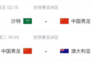 本月的世預賽,國足將在21號客戰(zhàn)沙特,25號主場迎戰(zhàn)澳大利亞。