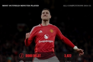 體育資訊3月16日訊 曼聯(lián)官方統(tǒng)計(jì)了本賽季各項(xiàng)賽事非門將球員的出場(chǎng)時(shí)間,達(dá)洛特壓B費(fèi)居首。