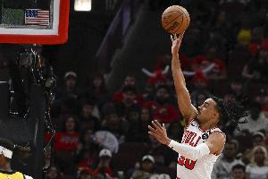 體育資訊3月16日訊 NBA常規(guī)賽,公牛半場65-60領先火箭。