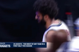 上半場,掘金全隊(duì)共有25次助攻,平了本賽季所有球隊(duì)半場助攻最多紀(jì)錄。