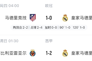 3月16日1:30,西甲第28輪,皇馬客戰(zhàn)比利亞雷亞爾(馬德里與比利亞雷亞爾市相距約400公里),皇馬激戰(zhàn)近2小時(shí)逆轉(zhuǎn)取勝。