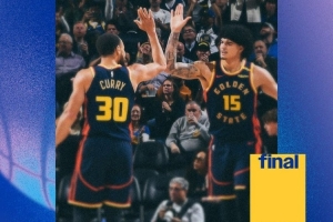 賽后勇士官方曬出贏球海報,首發(fā)的庫里和桑托斯登上封面。