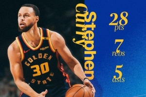 本場比賽,庫里出戰(zhàn)35分鐘,20投8中,三分13中4,罰球9中8,拿到28分7板5助。