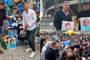 這兩位那不勒斯傳奇也拿著自己球員時代的照片來到馬拉多納球場外,他們被球迷包圍并為球迷簽名。