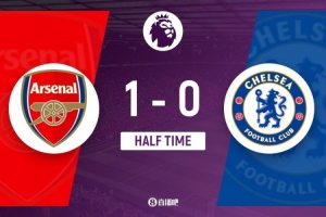 上半場(chǎng)傷停補(bǔ)時(shí)3分鐘,半場(chǎng)結(jié)束,阿森納暫1-0切爾西。