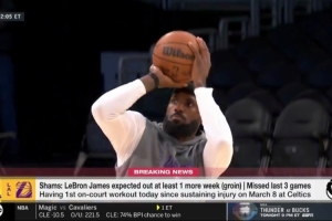體育資訊3月17日訊 今日,據(jù)著名記者Shams Charania報(bào)道,湖人前鋒詹姆斯今日在其左腹股溝拉傷后首次完成球場(chǎng)訓(xùn)練,預(yù)計(jì)還將缺席至少一周。