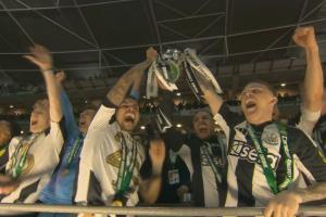 體育資訊03月17日訊 紐卡擊敗利物浦奪得聯(lián)賽杯獎杯,終結(jié)隊史70年國內(nèi)頂級賽事冠軍荒。賽后頒獎儀式,特里皮爾和吉馬良斯捧起冠軍獎杯!