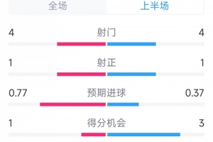 預(yù)期進(jìn)球:0.77-0.37
