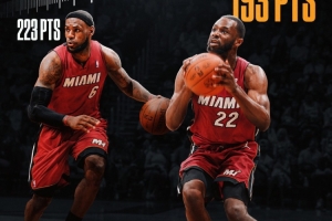 維金斯熱火生涯前10場193分是自詹姆斯(223分)后最高