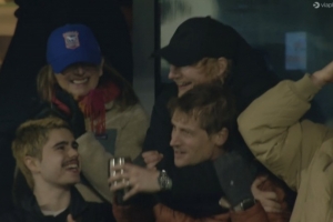 來到現(xiàn)場觀戰(zhàn)本場比賽的伊普斯維奇小股東、歌手黃老板(艾德-希蘭)也是心情大好,賽后喜笑顏開并與友人慶祝勝利。
