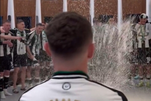 而現(xiàn)在,經(jīng)過一晚的休息,紐卡斯?fàn)柧銟凡抗偻茣癯隽饲騿T們的更衣室里瘋狂慶祝的視頻,并配文:“早上好!??”