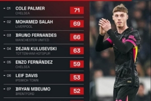 體育資訊3月17日訊 數(shù)據(jù)網(wǎng)站Squawka盤點了本賽季英超創(chuàng)造機會榜,其中帕爾默以71次居首,不過他自去年12月對陣維拉之后還沒有送出過助攻。具體創(chuàng)造機會榜如下: