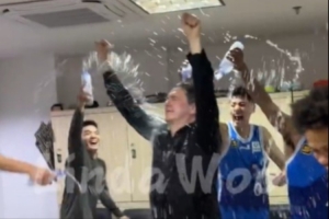 賽后,媒體人@LindaWooo曬出了福建男籃在更衣室瘋狂慶祝的視頻。視頻中,福建隊(duì)主教練凱撒被隊(duì)員瘋狂淋水慶祝。