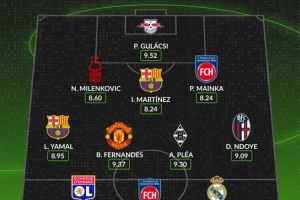 后衛(wèi):米倫科維奇(諾丁漢森林,8.60分)、伊尼戈(巴薩,8.24分)、帕特里克-梅恩卡(海登海姆,8,24分)