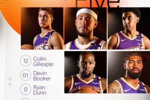 太陽(yáng)公布了本場(chǎng)首發(fā):吉萊斯皮、布克、鄧恩、KD、理查茲。