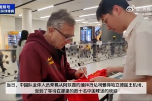 在利雅得哈立德國王機(jī)場(chǎng),國足受到等待在那里的數(shù)十名中國球迷的歡迎,伊萬科維奇和國腳為球迷們簽名并與他們合影。
