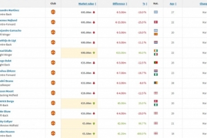 芒特:身價(jià)下跌400萬歐,目前身價(jià)2800萬歐