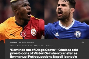 “我們都很清楚奧斯梅恩的能力,以及他能夠為球隊做出的貢獻。他的進球能力和性格都讓我想起了迭戈-科斯塔,他也是一名斗士。奧斯梅恩是一名全能球員,但他的性格也復雜多樣,今年夏天切爾西也許有很多更好的引援選擇。”