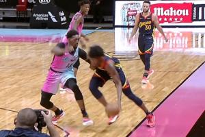 2021年4月對熱火,懷斯曼離譜失誤,庫里罕見仰頭沮喪