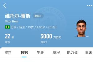 19歲的雷斯在今年冬窗以3700萬歐轉(zhuǎn)會費(fèi)從帕爾梅拉斯加盟曼城,目前為曼城在足總杯賽場上出場2次,尚未在英超完成首秀。