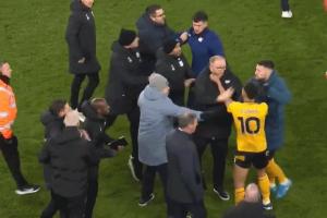 本月中旬,狼隊在英超被伊普斯維奇2-1絕殺,賽后視頻顯示,打入一球的狼隊前鋒庫尼亞肘擊一位伊普斯維奇隊工作人員(據(jù)太陽報報道為伊普斯維奇安保人員),隨后更是粗魯?shù)貜膶Ψ侥樕现苯影窍卵坨R。